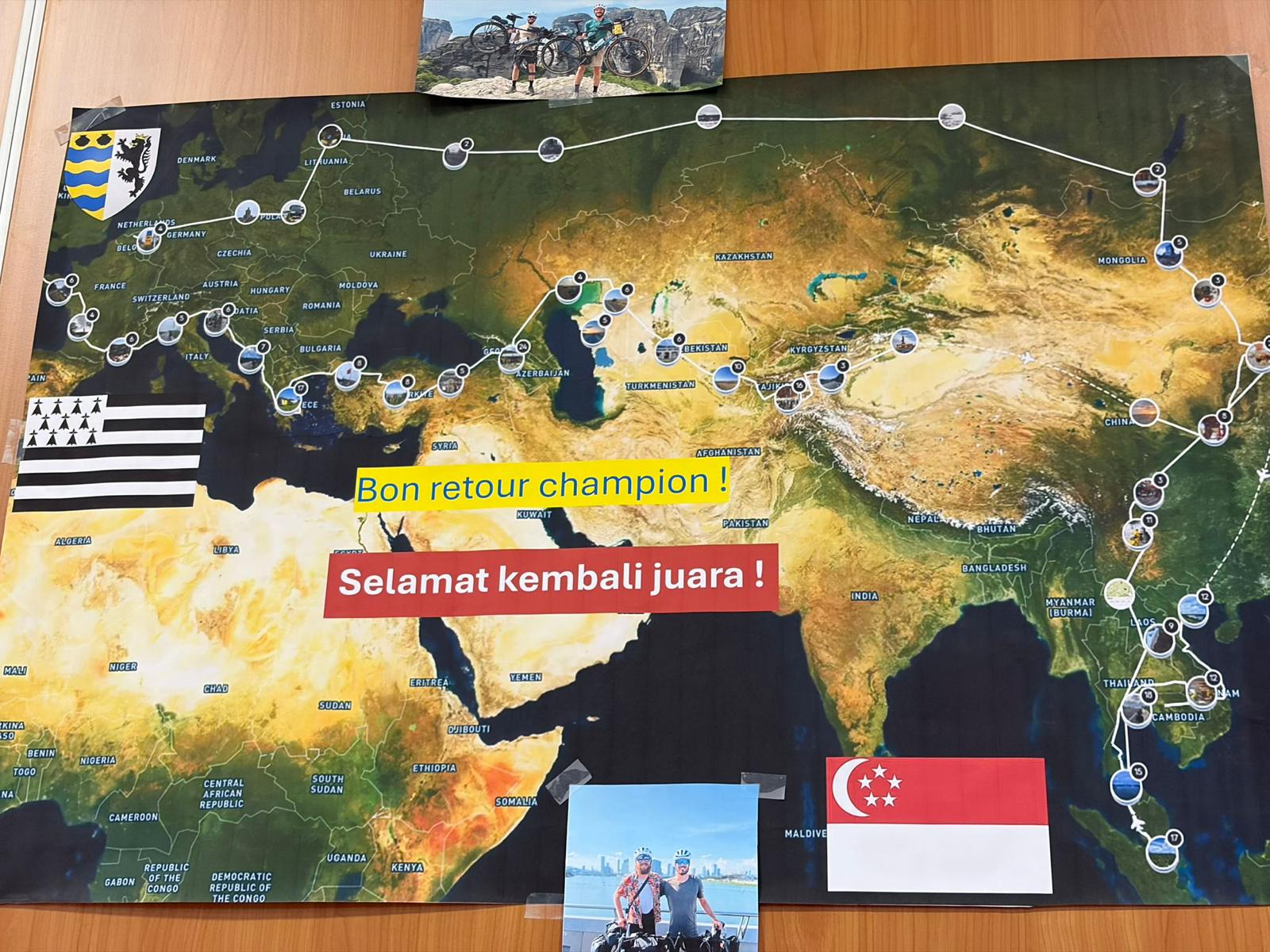 Malgré la fatigue et un certain déphasage, après ces 234 jours d’aventure, Hugo s’est prêté avec beaucoup de sympathie au jeu des questions sur son aventure cycliste. On y apprendra entre autre la température maximum supportée +48° et la plus basse -24°.